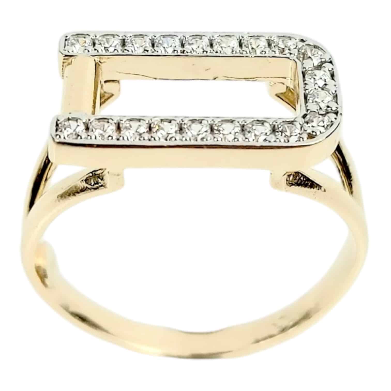 Luxuskivitelű gyűrű, amelyet egy merész téglalap alakú dizájn és ragyogó cirkónia kövek díszítenek, lenyűgöző hatást keltve. Ideális különleges alkalmakra vagy feltűnő darabként.